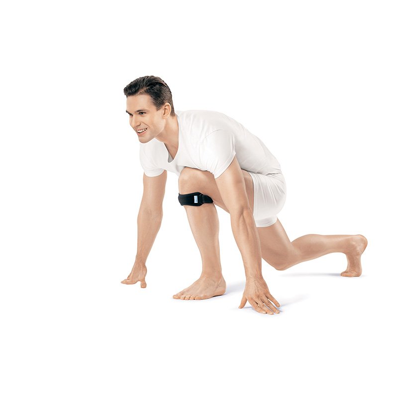 Бандаж Orlett на коленный сустав для фиксации надколенника, арт. PKN-103 осуществляет поддержку коленного сустава за счет фиксации сухожилий четырехглавой мышцы бедра, фиксирует ткани коленного сустава в области бугристости большой берцовой кости и стабилизирует коленный сустав.