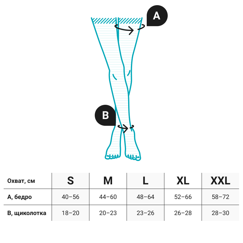 Обратите внимание! При подборе размера гольфов, чулок и колгот руководствуйтесь приведенными здесь таблицами. Измерения нужно проводить утром, до появления отеков на ногах.