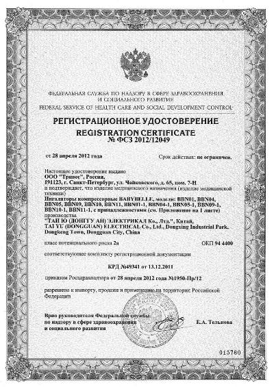• небулайзер — 1 шт.