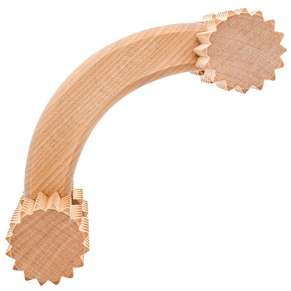 Универсальный массажёр из натуральной берёзы снимает напряжение в мышцах. Отлично подходит для спины, рук и ног. Массаж восстанавливает циркуляцию крови в тканях, снимает отёчность, гармонизирует тонус нервной системы и борется с целлюлитом. Процедуру можно легко совместить с ароматерапией, т. к. дерево легко пропитывается нагретыми маслами, надолго сохраняя их запах.