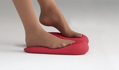 Двусторонняя массажная поверхность венотренажера прекрасно подходит для приятного оздоровительного массажа стоп. Гладкая поверхность массажных шипов не оставляет зацепок на колготках и чулках.  Давление воздуха регулируется индивидуально. В комплекте с венотренажером идет насос.