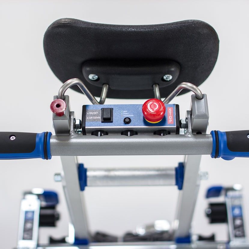 Подъёмник SANO PTR XT 160 – состоит из платформы с закрепленными на ней пандусами и управляющей рукоятки. На управляющей рукоятке присутствуют следующие органы управления: - кнопка, с помощью которой осуществляется перемещение устройства вперед и назад; - аварийная кнопка, блокирующая устройство; - кнопка, с помощью которой осуществляется выбор направления движения устройства; Рукоятка управления оснащена: - регулируемым по высоте подголовником; - перекладиной. Перекладина перемещается вверх и вниз по рукоятке управления (имеет 15 положений, устанавливаемых с помощью фиксирующих головок, расположенных с левой и правой стороны). Перекладина имеет изменяемую ширину, регулируемую с помощью выдвижных держателей, которые фиксируют спинку инвалидной коляски с помощью подвижного элемента с зажимом (по типу струбцины). Минимальное расстояние между держателями 366 мм, максимальное расстояние между держателями 581 мм; - ремнем для фиксации тела человека; - в нижней части рукоятки управления располагаются упоры, для инвалидной коляски; - для удобства управления устройством рукоятка имеет прорезиненные ручки. Управляющая рукоятка подключается к платформе без использования проводов. Платформа оснащена: - двумя гусеничными лентами, позволяющими передвигаться по ступеням; - колесной системой. Колесная система состоит из четырех колес, располагающихся по бокам платформы (два колеса с каждой стороны платформы) - кнопкой, с помощью которой осуществляется перемещение устройства вперед и назад; - кнопкой, с помощью которой осуществляется выбор направления движения устройства; - разъемом для подключения блока питания; - разъемом для установки ключа, приводящего устройство в режим готовности; - светодиодной подсветкой ступеней; - трехпозиционным переключателем скоростей; Во избежание попадания посторонних деталей, движущиеся части, за исключением гусеничных лент и боковых колес, закрыты.