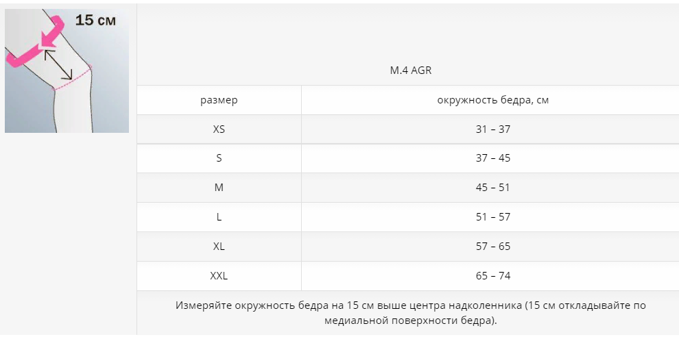 | Измеряйте окружность бедра на 15 см выше центра надколенника (15 см откладывайте по медиальной поверхности бедра). | ||