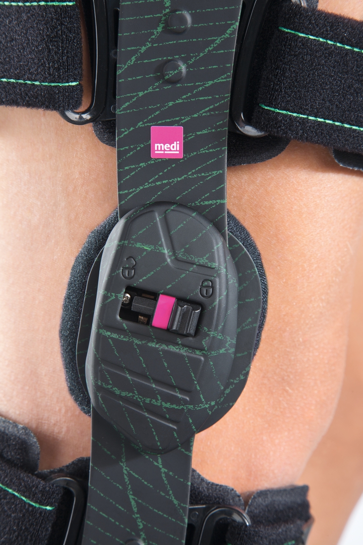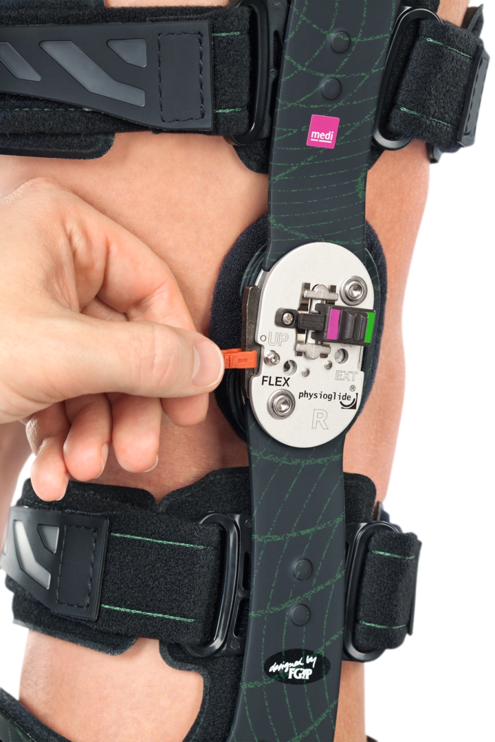 После ряда артроскопических операций можно ходить на прямой ноге, и сгибать ногу без нагрузки. Шарниры ортеза М.4s X-lock можно заблокировать в положении разгибания простым смещением бегунков, расположенных на внешней стороне шарниров. Таким образом, пациент получает возможность менять согнуть колено в любой ситуации, когда это разрешено лечащим врачом, например, при посадке в автомобиль, посещении туалета и т.п.