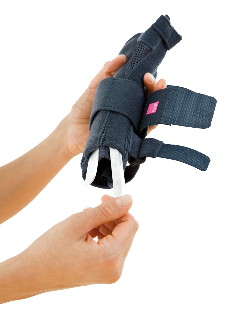 Шина Manumed T для лучезапястного сустава с поддержкой большого пальца – идеальное решение при лечении повреждений и заболеваний, когда требуется ограничить подвижность не только лучезапястного сустава, но и большого пальца кисти. Алюминиевая шина на ладонной поверхности имеет анатомическую форму. При необходимости ее можно моделировать индивидуально. Иммобилизация создает функциональный покой и ускоряет выздоровление. При этом сразу отмечается уменьшение интенсивности болевого синдрома.