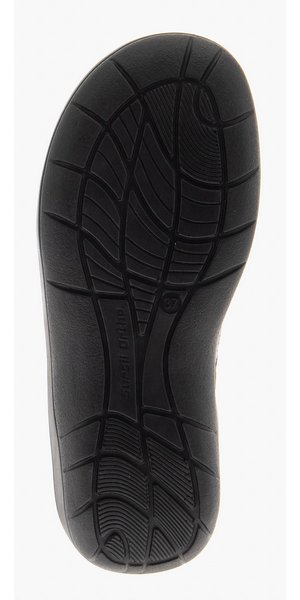- Нескользящая подошва из полиуретана цельнолитого типа обеспечена небольшим подъемом в области пятки.