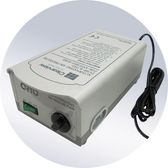 Воздушно-контрольный компрессор с креплением для спинки кровати создает необходимое давление в ячейках матраса, снабжен регулятором уровня давления в зависимости от веса больного, бесшумен, безопасен, не токсичен.